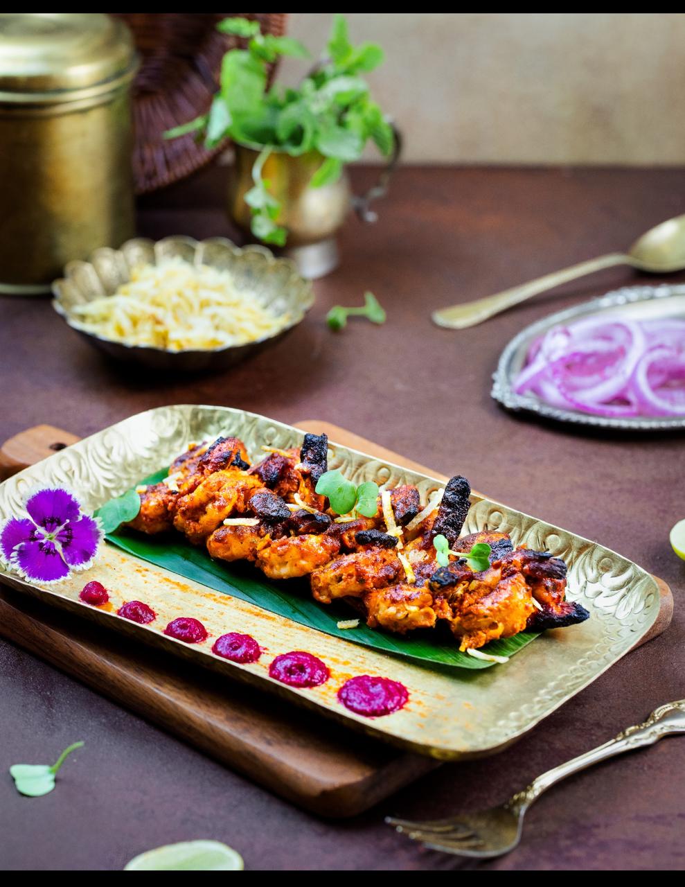 Prawns marinated in yogurt and Indian spices, cooked with perfection in charcoal oven.