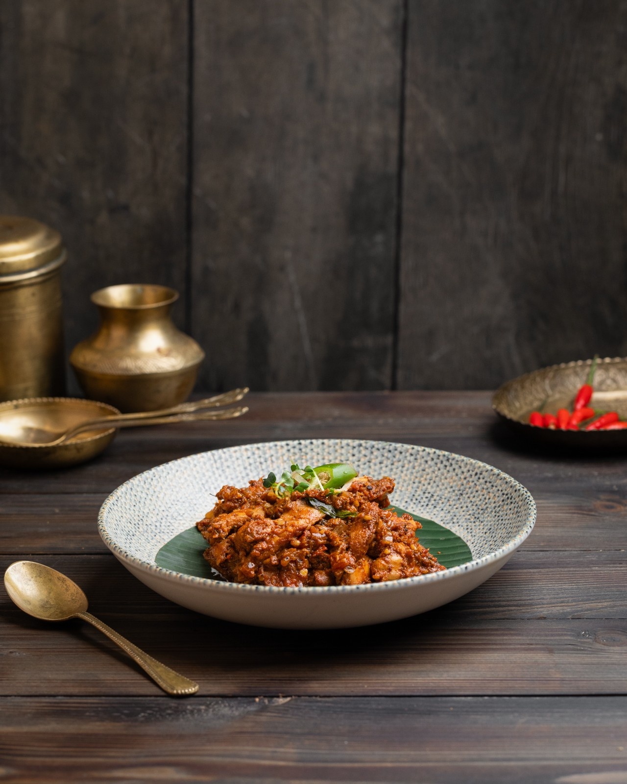 Fried onion, garlic, and cashew nuts marinated with hung curd and chicken drums. Served with charred pepper chutney.